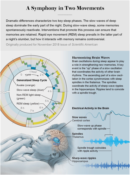 As slow waves are important for memory consolidation, this links two disparate functions of sleep. What’s exciting about this is it’s combining features of brain function that people don’t normally think of as connected. It isn’t obvious things had to be this way, but it may represent an example of nature being efficient. It’s a matter of nature not dividing tasks between higher level and lower level, like how you run a company, where you have a boss making decisions and cleaning people coming in. In biology, it’s everybody contributing, as it makes more sense.